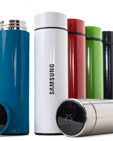 Garrafa térmica em aço inox com parede dupla 450ml com infusor, Display LED com termômetro digital na tampa para indicar a temperatura do líquido, Conserva líquido quente por até 5 horas e líquido frio até 7 horas