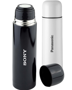 Garrafa em aço inox com parede dupla de 500 ml, conserva a temperatura quente ou fria e sua tampa pode ser usada como copo.