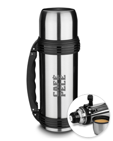 Garrafa térmica em aço inox com parede dupla isolada a vácuo,com capacidade de até 1,2l. Além de garantir a temperatura ideal do líquido por horas, é muito fácil de ser transportada por sua alça lateral que torna o uso desse potente recipiente muito mais simples. Tampa rosqueável e anel de silicone para vedação na tampa.