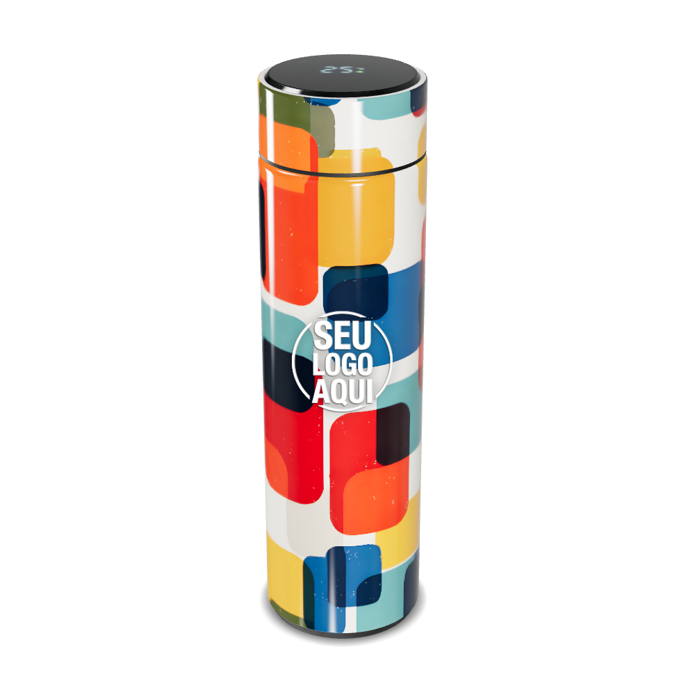 Garrafa térmica em aço inox com parede dupla 450ml com infusor, Display LED com termômetro digital na tampa para indicar a temperatura do líquido, Conserva líquido quente por até 5 horas e líquido frio até 7 horas