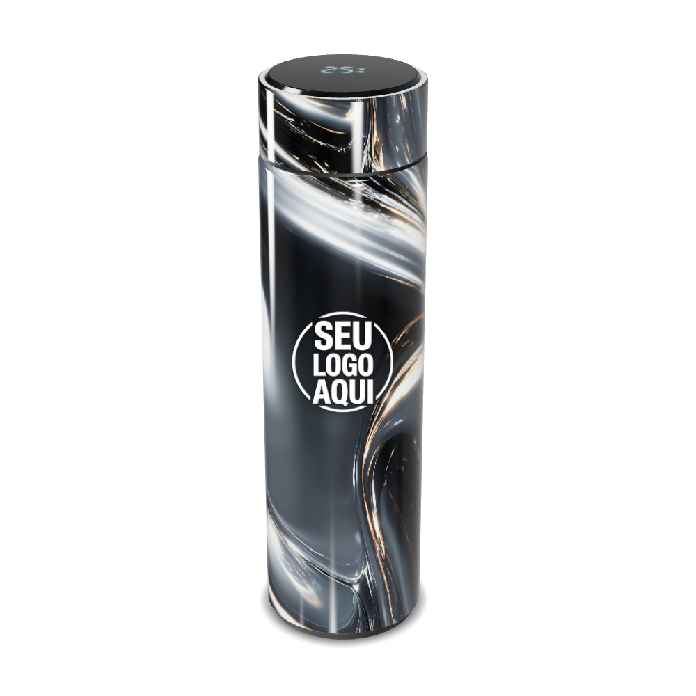 Garrafa térmica em aço inox com parede dupla 450ml com infusor, Display LED com termômetro digital na tampa para indicar a temperatura do líquido, Conserva líquido quente por até 5 horas e líquido frio até 7 horas