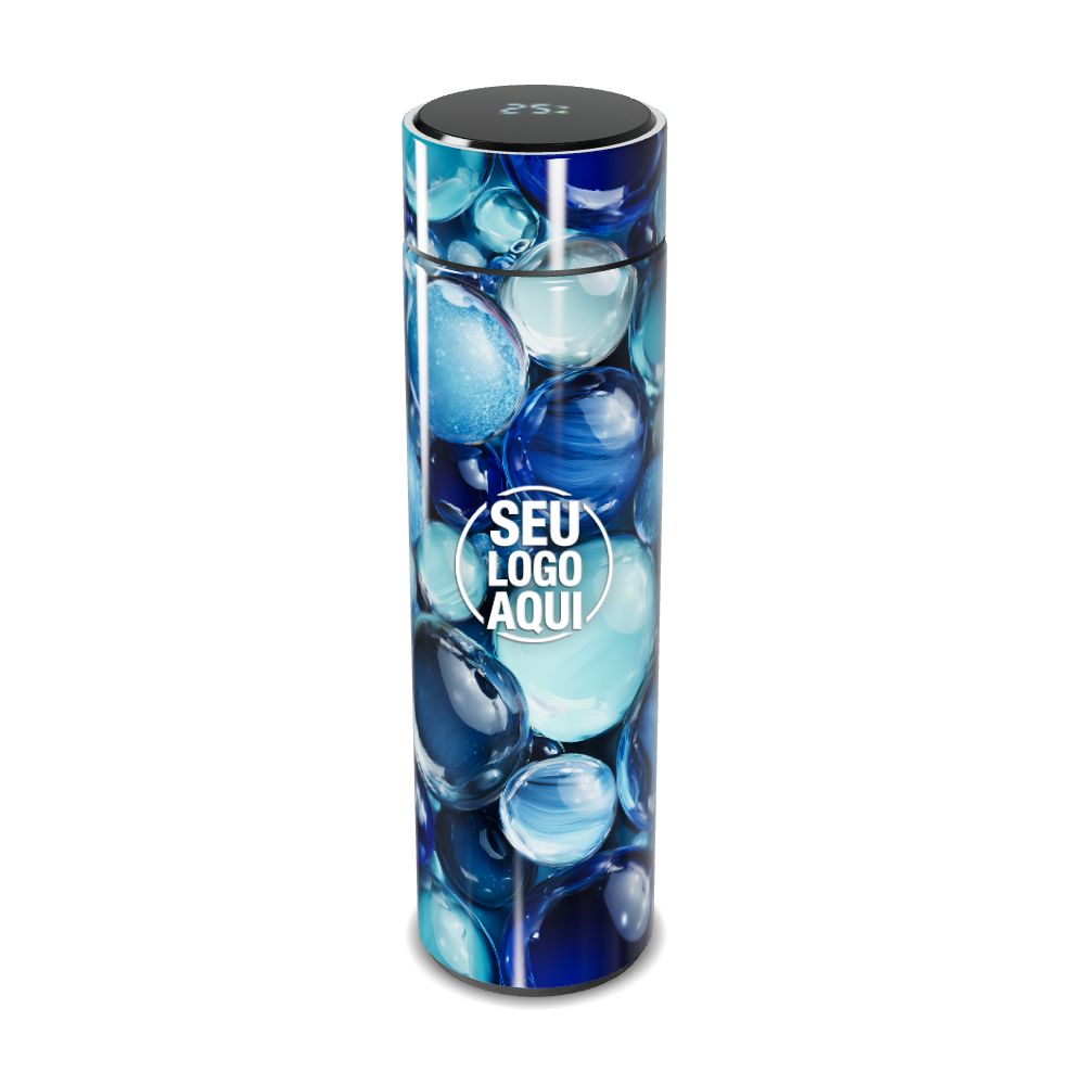 Garrafa térmica em aço inox com parede dupla 450ml com infusor, Display LED com termômetro digital na tampa para indicar a temperatura do líquido, Conserva líquido quente por até 5 horas e líquido frio até 7 horas