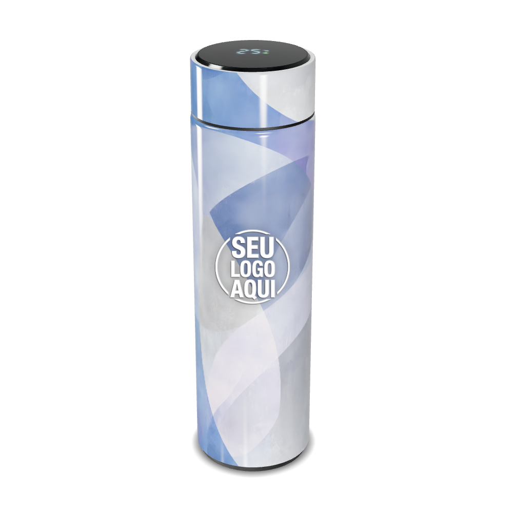 Garrafa térmica em aço inox com parede dupla 450ml com infusor, Display LED com termômetro digital na tampa para indicar a temperatura do líquido, Conserva líquido quente por até 5 horas e líquido frio até 7 horas