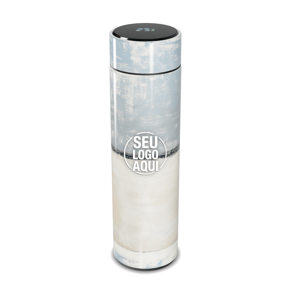 garrafa térmica touch azul e branca digital personalizada