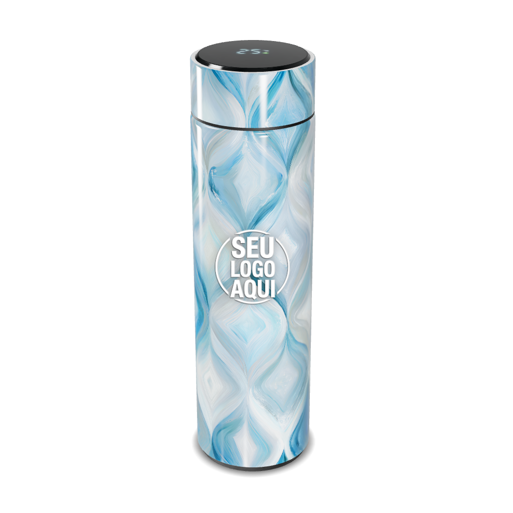 garrafa térmica touch azul mármore digital personalizada