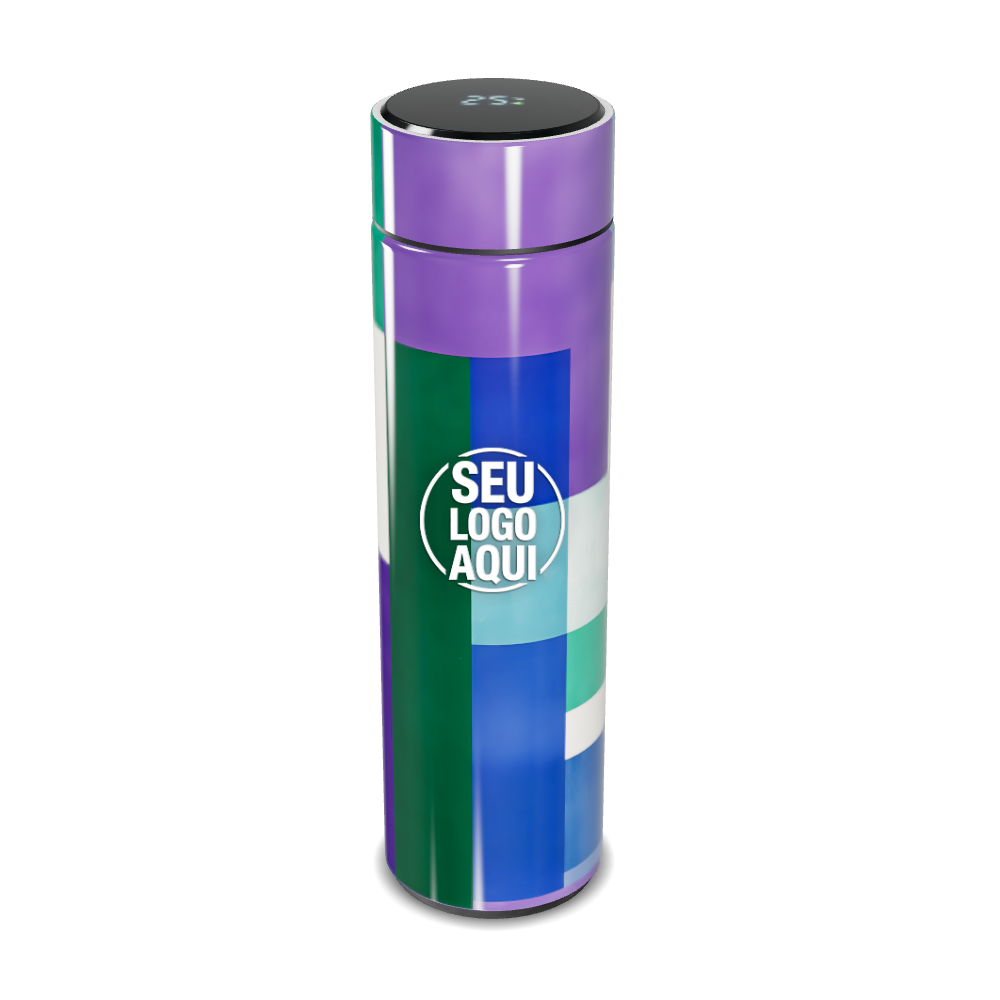 Garrafa térmica em aço inox com parede dupla 450ml com infusor, Display LED com termômetro digital na tampa para indicar a temperatura do líquido, Conserva líquido quente por até 5 horas e líquido frio até 7 horas