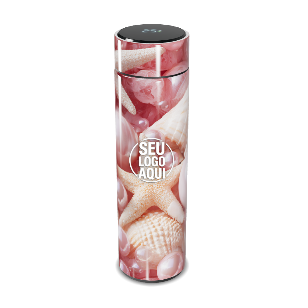 Garrafa térmica em aço inox com parede dupla 450ml com infusor, Display LED com termômetro digital na tampa para indicar a temperatura do líquido, Conserva líquido quente por até 5 horas e líquido frio até 7 horas