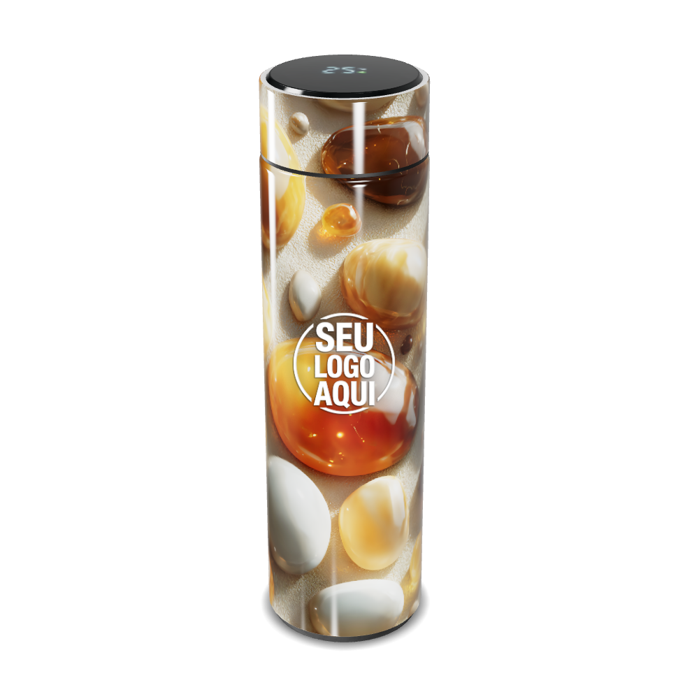 garrafa térmica touch design com pedras naturais personalizada