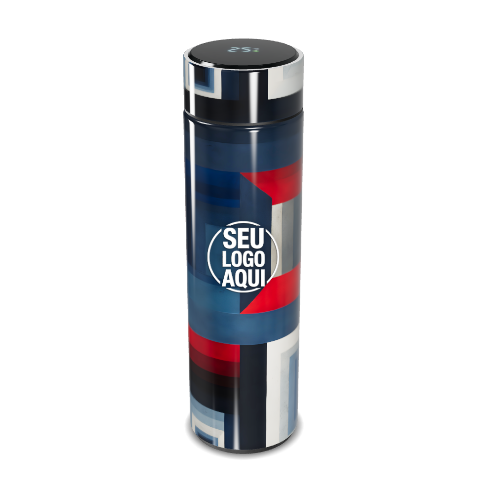 Garrafa térmica em aço inox com parede dupla 450ml com infusor, Display LED com termômetro digital na tampa para indicar a temperatura do líquido, Conserva líquido quente por até 5 horas e líquido frio até 7 horas