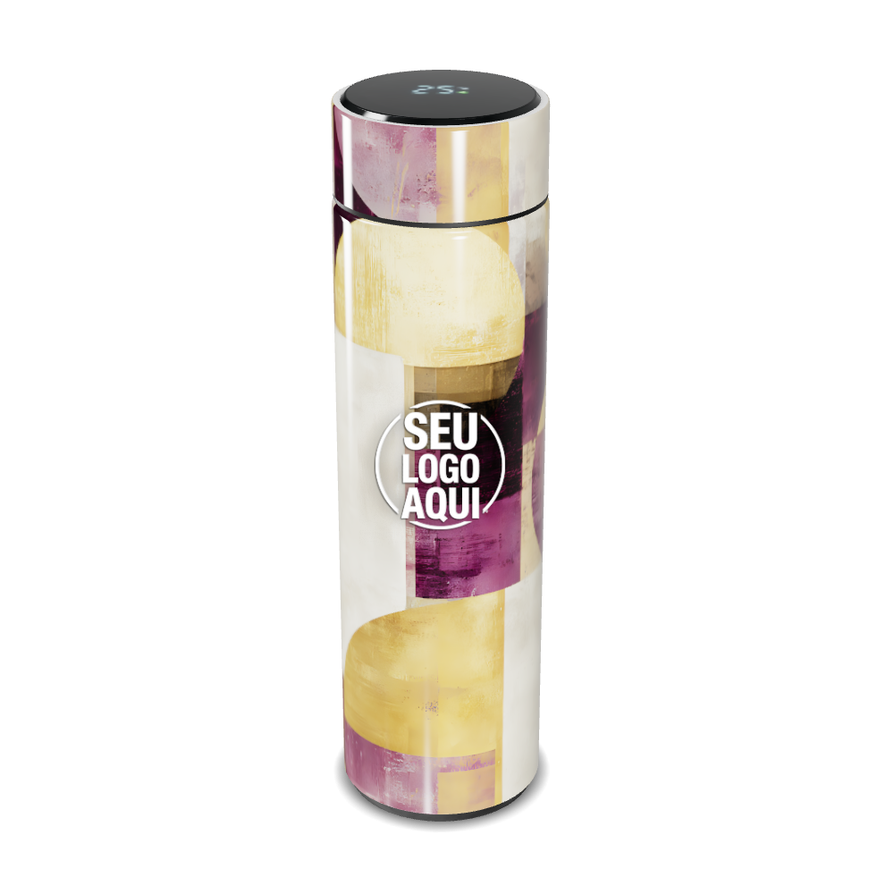 Garrafa térmica em aço inox com parede dupla 450ml com infusor, Display LED com termômetro digital na tampa para indicar a temperatura do líquido, Conserva líquido quente por até 5 horas e líquido frio até 7 horas