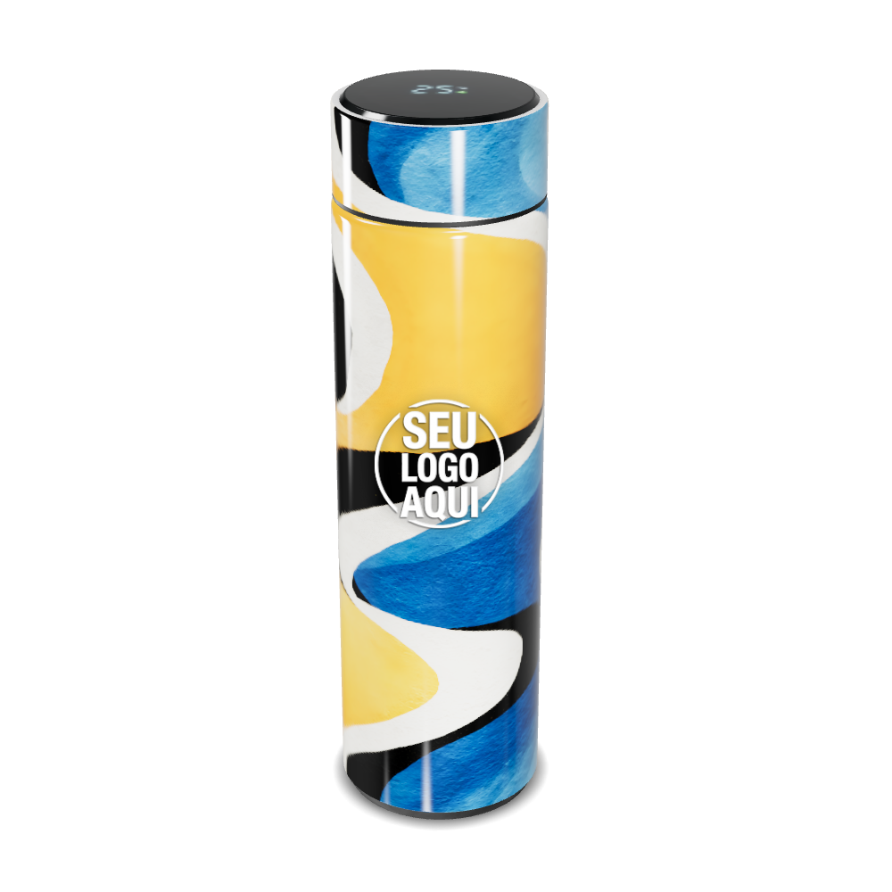 Garrafa térmica em aço inox com parede dupla 450ml com infusor, Display LED com termômetro digital na tampa para indicar a temperatura do líquido, Conserva líquido quente por até 5 horas e líquido frio até 7 horas