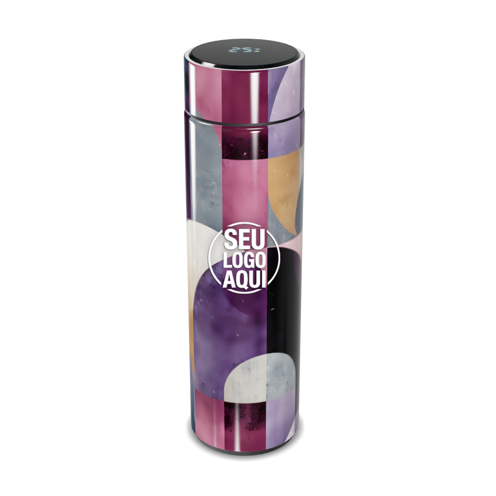 Garrafa térmica em aço inox com parede dupla 450ml com infusor, Display LED com termômetro digital na tampa para indicar a temperatura do líquido, Conserva líquido quente por até 5 horas e líquido frio até 7 horas