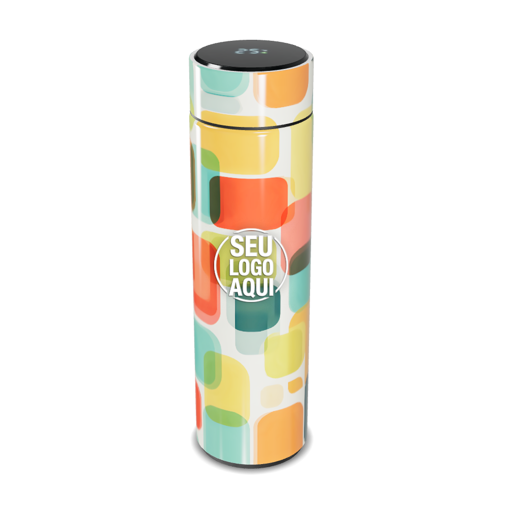 Garrafa térmica em aço inox com parede dupla 450ml com infusor, Display LED com termômetro digital na tampa para indicar a temperatura do líquido, Conserva líquido quente por até 5 horas e líquido frio até 7 horas