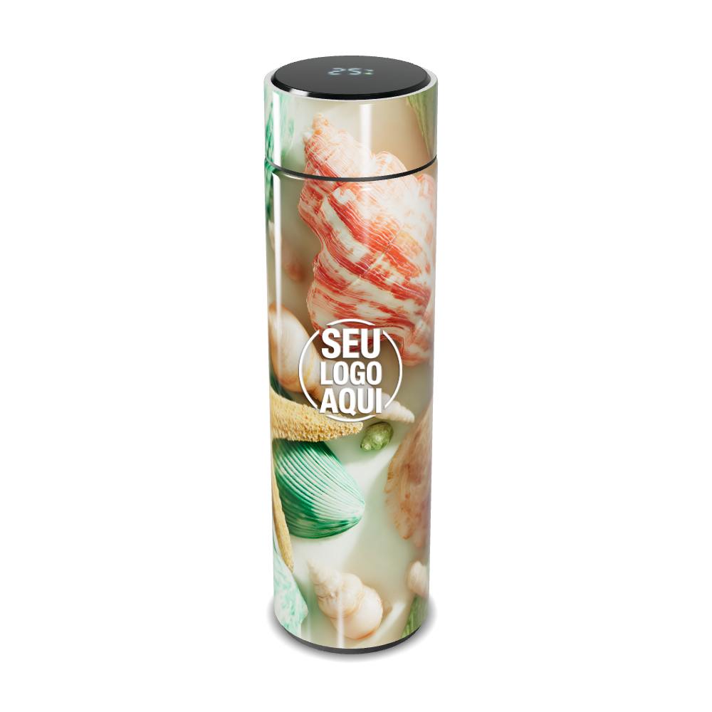 garrafa térmica touch estampa conchas e folhas personalizada
