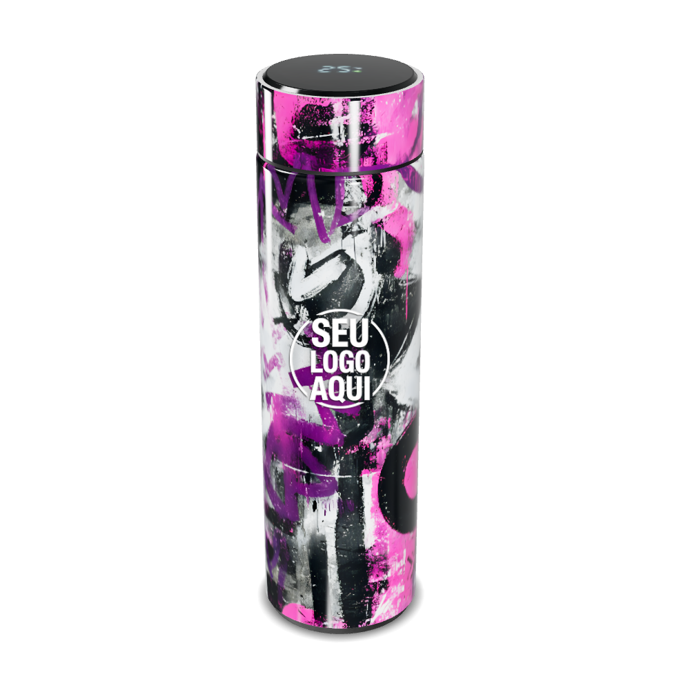 garrafa térmica touch estampa grafite rosa personalizada