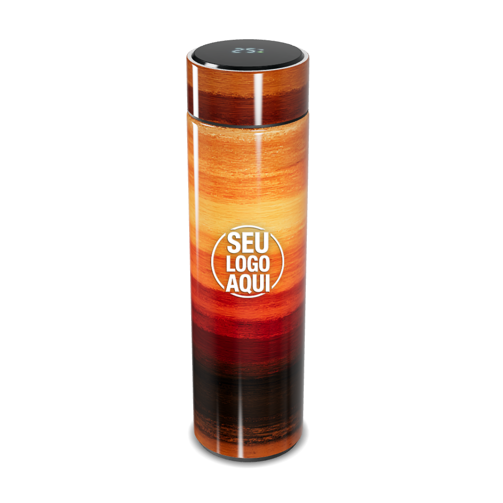 Garrafa térmica em aço inox com parede dupla 450ml com infusor, Display LED com termômetro digital na tampa para indicar a temperatura do líquido, Conserva líquido quente por até 5 horas e líquido frio até 7 horas