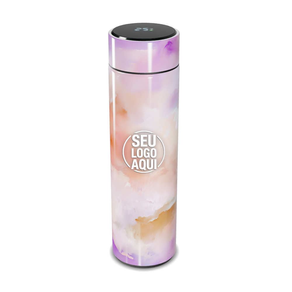 Garrafa térmica em aço inox com parede dupla 450ml com infusor, Display LED com termômetro digital na tampa para indicar a temperatura do líquido, Conserva líquido quente por até 5 horas e líquido frio até 7 horas