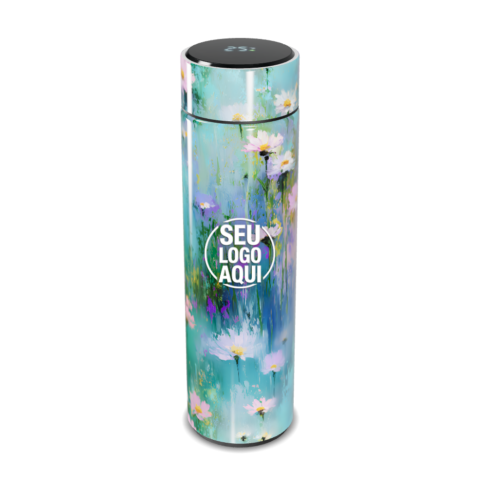 garrafa térmica touch floral azul personalizada