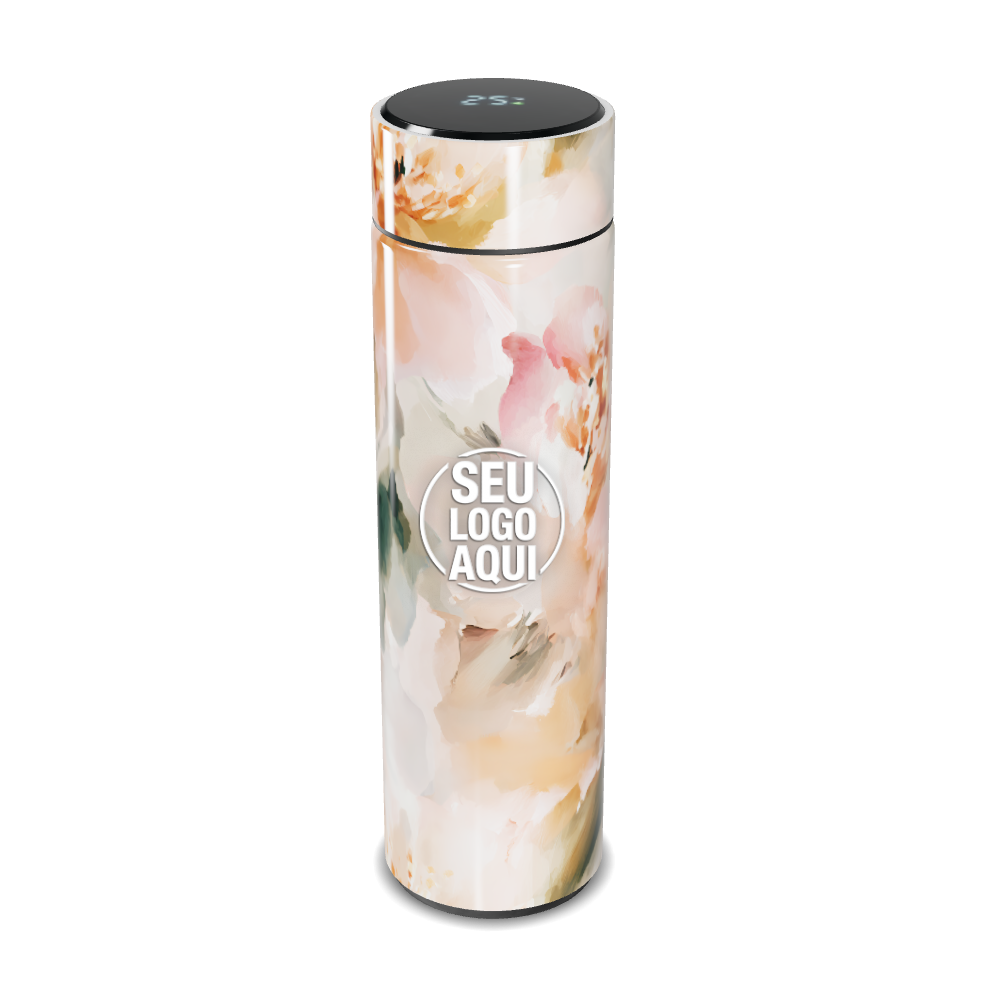 Garrafa térmica em aço inox com parede dupla 450ml com infusor, Display LED com termômetro digital na tampa para indicar a temperatura do líquido, Conserva líquido quente por até 5 horas e líquido frio até 7 horas