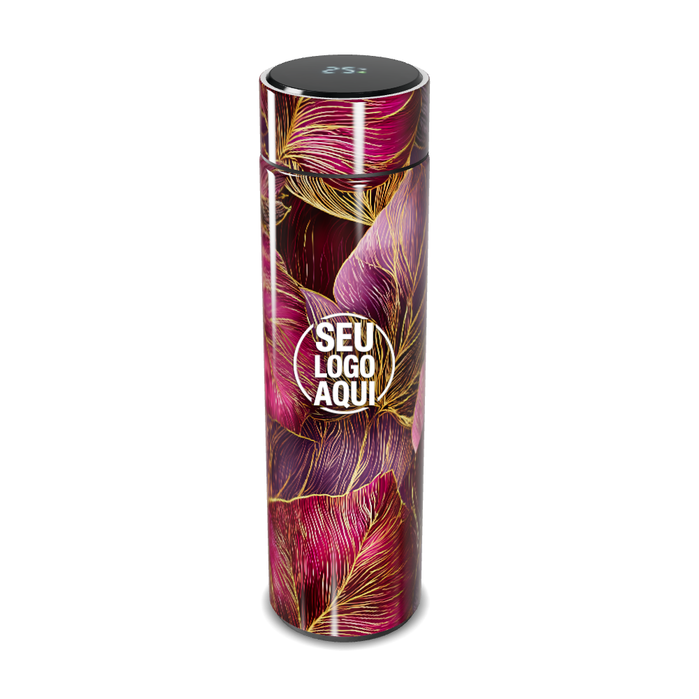 Garrafa térmica em aço inox com parede dupla 450ml com infusor, Display LED com termômetro digital na tampa para indicar a temperatura do líquido, Conserva líquido quente por até 5 horas e líquido frio até 7 horas