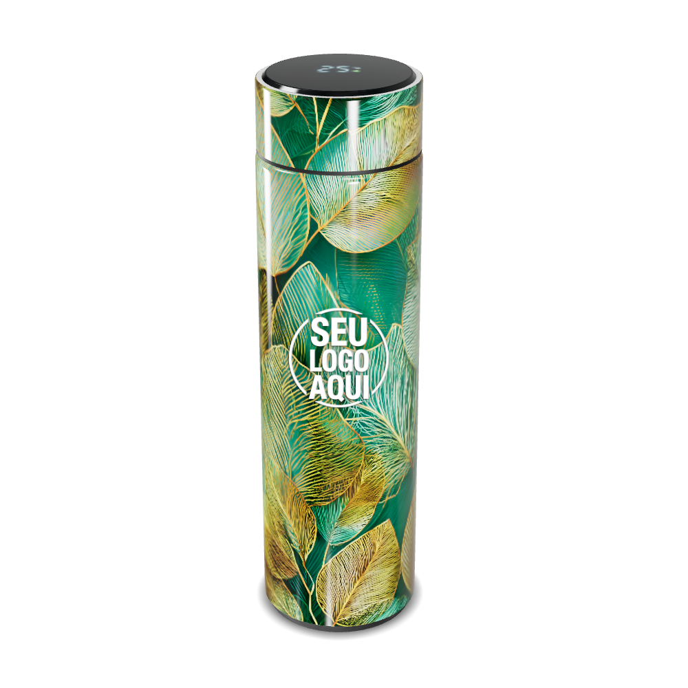 garrafa térmica touch folhas verde dourado personalizada