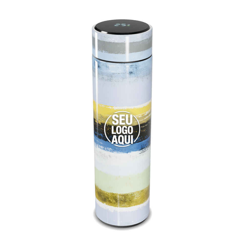 garrafa térmica touch listras coloridas aço personalizada
