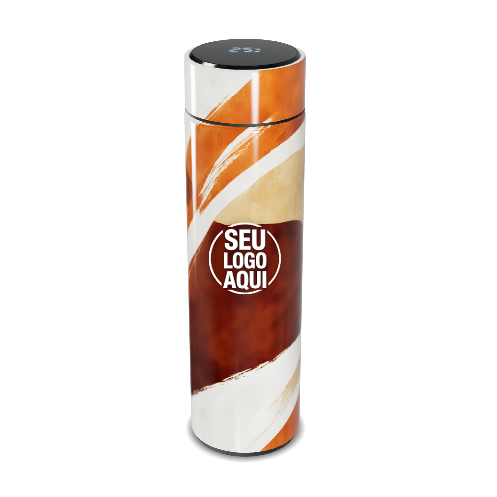 Garrafa térmica em aço inox com parede dupla 450ml com infusor, Display LED com termômetro digital na tampa para indicar a temperatura do líquido, Conserva líquido quente por até 5 horas e líquido frio até 7 horas