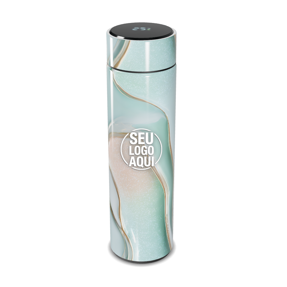 garrafa térmica touch mármore verde digital personalizada