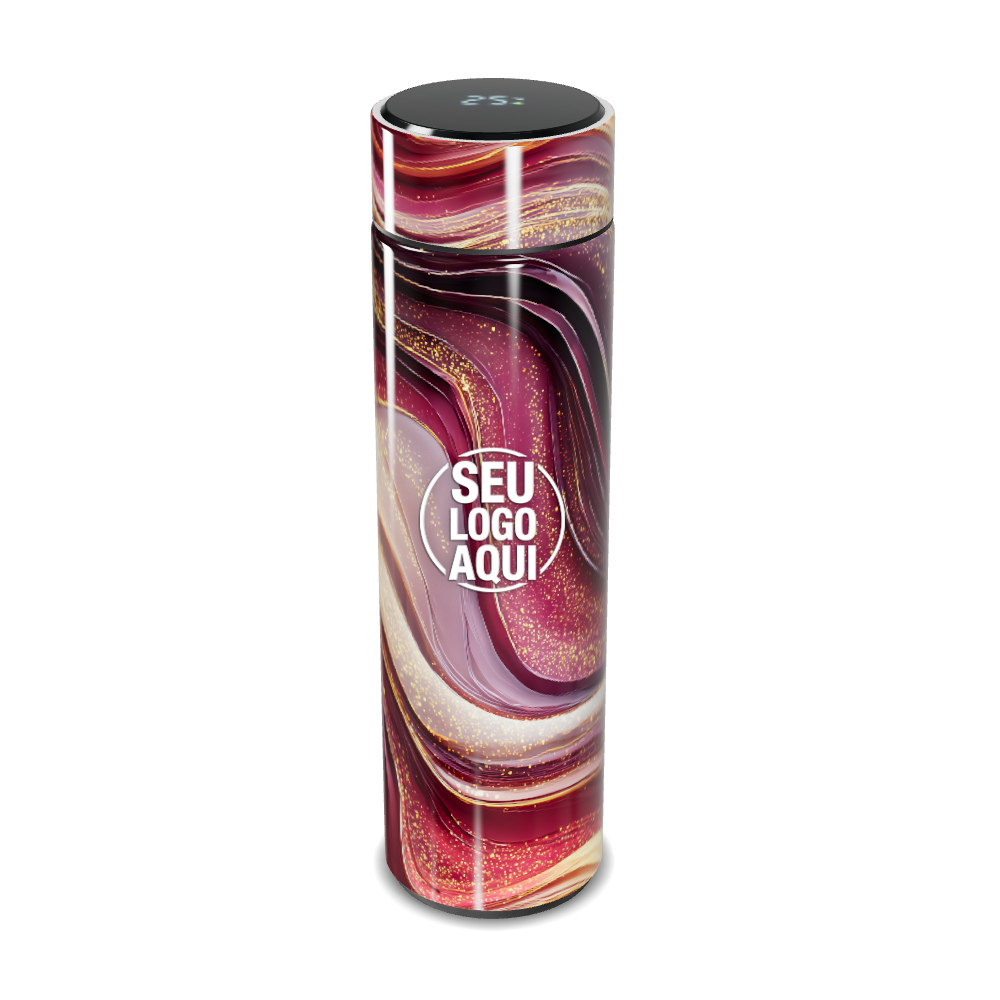 Garrafa térmica em aço inox com parede dupla 450ml com infusor, Display LED com termômetro digital na tampa para indicar a temperatura do líquido, Conserva líquido quente por até 5 horas e líquido frio até 7 horas