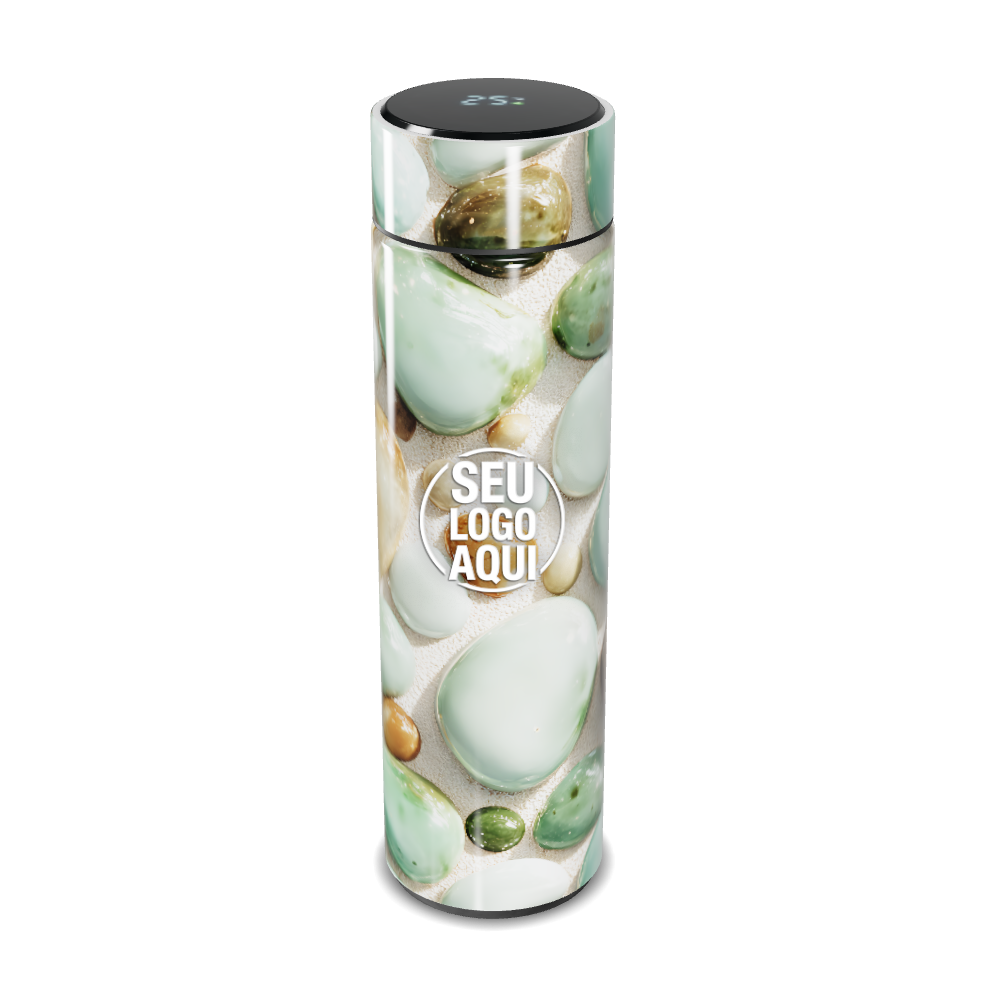 Garrafa térmica em aço inox com parede dupla 450ml com infusor, Display LED com termômetro digital na tampa para indicar a temperatura do líquido, Conserva líquido quente por até 5 horas e líquido frio até 7 horas