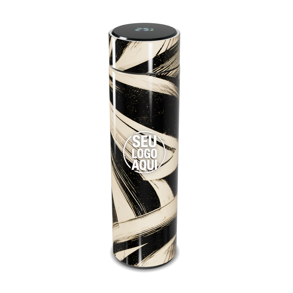 Garrafa térmica em aço inox com parede dupla 450ml com infusor, Display LED com termômetro digital na tampa para indicar a temperatura do líquido, Conserva líquido quente por até 5 horas e líquido frio até 7 horas