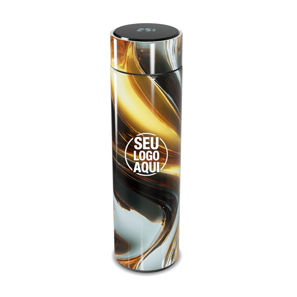 garrafa térmica touch preto e dourado com display personalizada