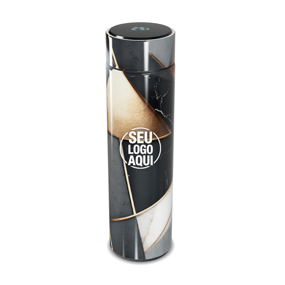 garrafa térmica touch preto e dourado geométrico personalizada