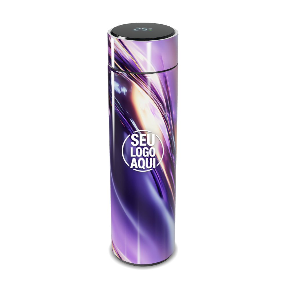 Garrafa térmica em aço inox com parede dupla 450ml com infusor, Display LED com termômetro digital na tampa para indicar a temperatura do líquido, Conserva líquido quente por até 5 horas e líquido frio até 7 horas