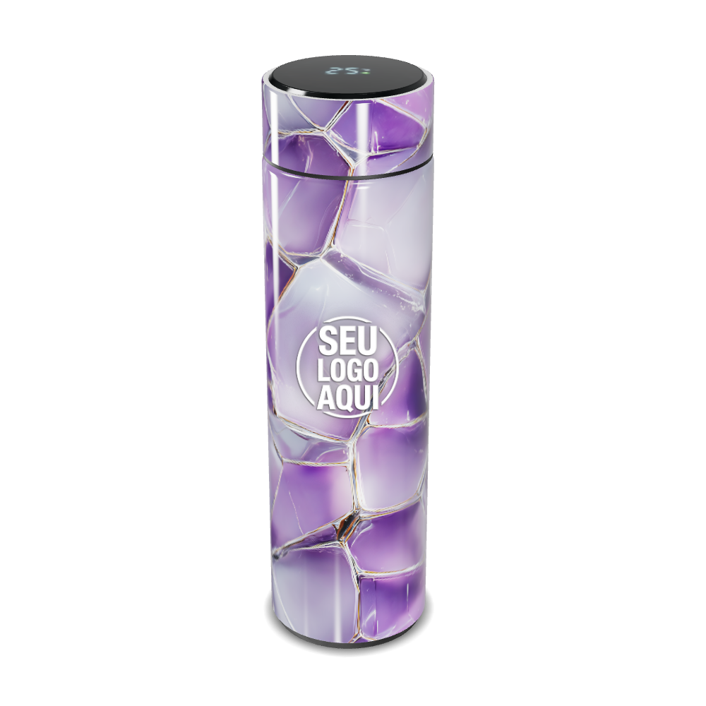 garrafa térmica touch roxa com estampa geométrica personalizada