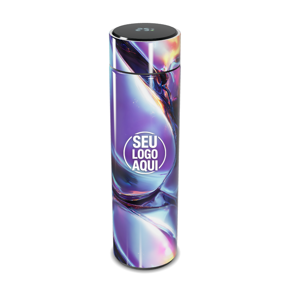 Garrafa térmica em aço inox com parede dupla 450ml com infusor, Display LED com termômetro digital na tampa para indicar a temperatura do líquido, Conserva líquido quente por até 5 horas e líquido frio até 7 horas