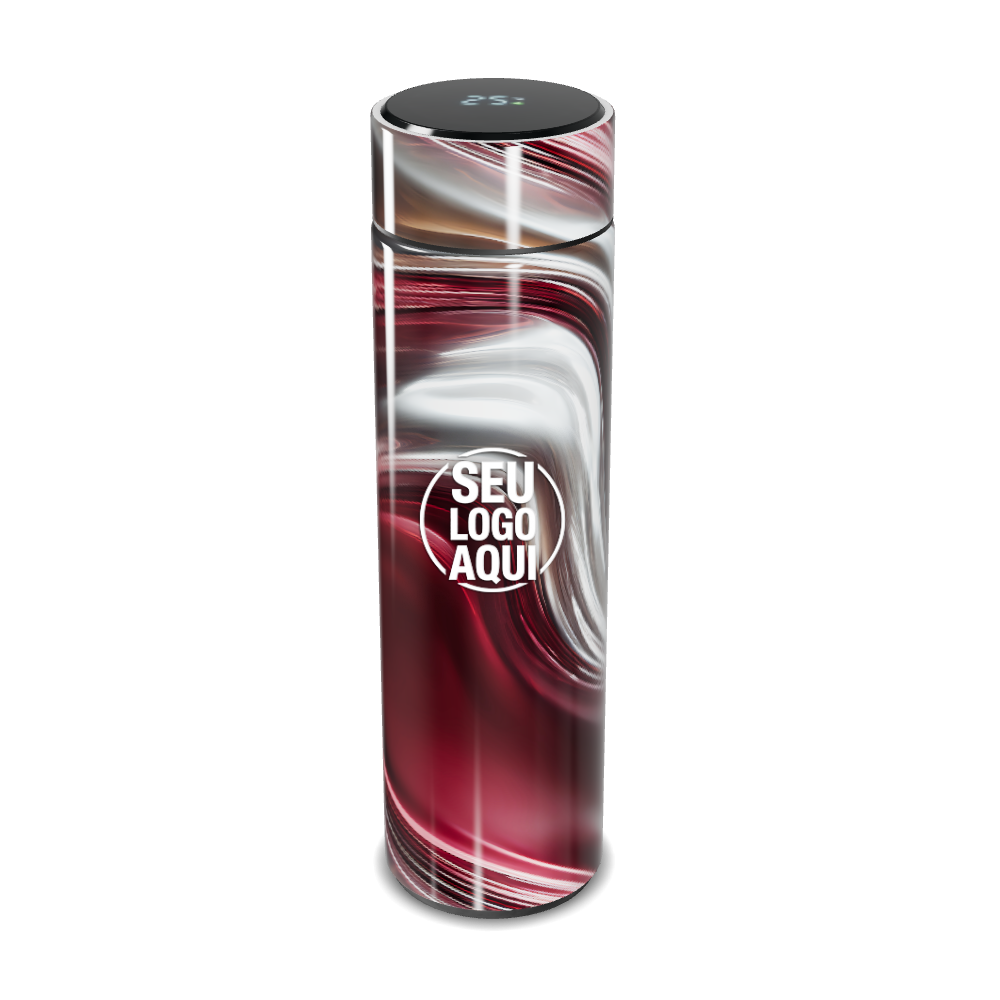 Garrafa térmica em aço inox com parede dupla 450ml com infusor, Display LED com termômetro digital na tampa para indicar a temperatura do líquido, Conserva líquido quente por até 5 horas e líquido frio até 7 horas