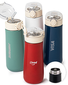Garrafa Térmica feita em Inox 304, capacidade 500ml. Tampa rosqueável com botão de acionamento para abrir a tampa protetora do bocal. Acompanha bico de silicone e canudo plástico.