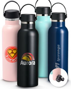 Garrafa Térmica feita em Inox 304 com parede dupla e capacidade de 550ml. Com tampa rosqueável e alça para transporte para levá-la onde quiser.