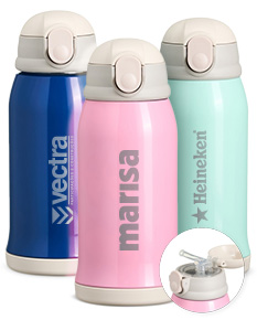 Garrafa térmica de 550ml em aço inox SUS 316, ideal para conservar a temperatura de bebidas por mais tempo. Possui tampa com proteção para o canudo, evitando impurezas, e bico de silicone acionado por botão. Prática para o consumo de sucos, refrigerantes e outras bebidas em qualquer lugar.