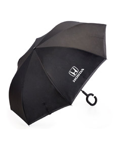 Guarda chuva invertido com forro interno tecido de nylon impermeável preto, possui um mecanismo inovador permitindo que o usuário não se molhe ao entrar e sair de ambientes devido sua abertura invertida, quando feito o movimento para fechar as varetas inverterão para cima criando um formato circular impedindo a chuva de atingir o usuário, podendo "segurar" a chuva enquanto entra/sai de um ambiente e depois virando o guarda-chuva irá escorrer a água.