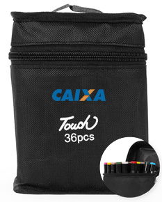 Um kit com 36 canetas marcadoras com pontas duplas: uma fina e outra chanfrada grossa. Cada uma das canetas possui corpo leve em plástico, projetado com foco na ergonomia, o que torna seu manuseio simples e agradável até mesmo em períodos prolongados. Este é um conjunto que, através de toda a sua versatilidade com as pontas e a variedade de cores, traz todas as possibilidades criativas para pintar, desenhar, escrever ou marcar textos. Acompanham bolsa para facilitar o transporte do kit.