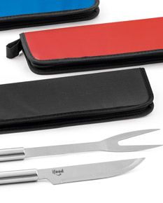 Kit churrasco 2 peças com estojo de nylon com alça. Contém faca e garfo em inox.