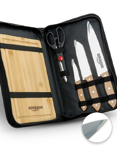 Kit churrasco 3 peças com estojo. Contém faca, garfo e pegador.