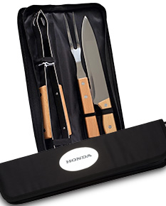 Prepare churrascos memoráveis e deliciosos com o nosso kit com quatro peças essenciais: espátula, garfo, pegador e faca de 7 polegadas, todas em aço inox com cabos de madeira, acomodadas em um estojo de nylon que facilita o armazenamento e transporte. Para maior exclusividade, acompanha uma plaquinha metálica personalizável com verso autoadesivo.