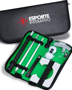 Kit portátil de golfe para treinos em casa ou no escritório. Inclui taco desmontável (84,5?cm), 2 bolinhas (3,5?cm) e buraco moldura (9,5?cm). Diversão e precisão em qualquer lugar!