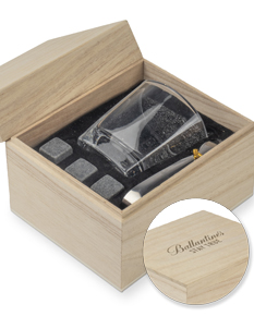Kit Drink inclui: 1 copo de vidro de 200 ml, ideal para bebidas; 1 pegador de gelo em metal, resistente e prático; e 3 cubos de pedra-sabão reutilizáveis, que mantêm a temperatura da bebida sem diluí-la.