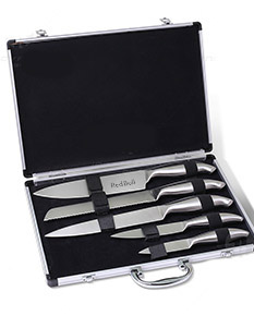 Kit facas. Contém 5 peças de inox em tamanhos diferentes. Acompanha maleta.