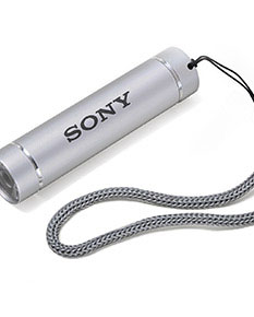 Lanterna de alumínio com alça. Possui um led acionado através do botão emborrachado e alça para transporte em nylon. Compartimento do botão desrosqueável para inserção de uma unidade de pilha AA(não inclusa).