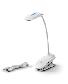 Luminátia de mesa em ABS. Com mola para ajustar de acordo com seu uso. Possui LED COB com 3 modos de luz (fraco, médio e forte). Autonomia até 20 horas. Incluso cabo USB para carregamento.Medida da base 11,5 x 6 cm. Medida apenas da lanterna na parte superior 11,5 x 4 cm. .